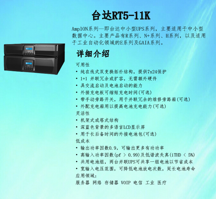 輸入/輸出/旁路(電壓,頻率),負載百分比及電池容量百分比,剩余時間;異常信息及智能自珍斷 |